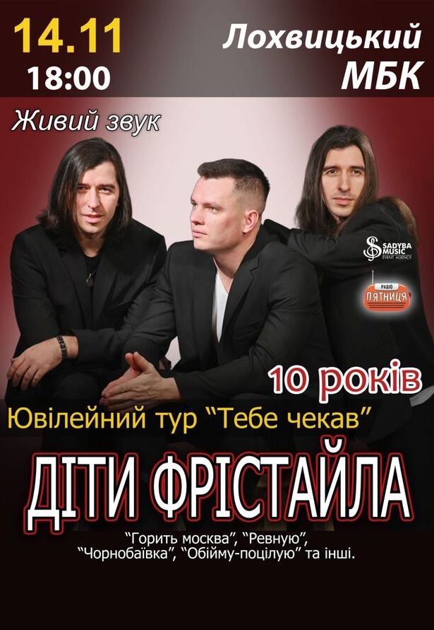 Частина виручених коштів з наших концертів буде спрямована на підтримку ЗСУ. З нетерпінням чекаємо на вас! Ваші «Діти Фристайла».
